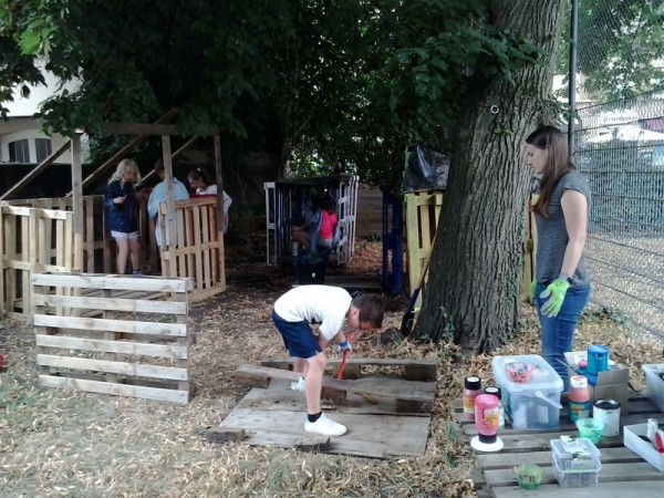 Dazu zählt Gartenarbeit, wie z. B. Blumen pflanzen und gießen, Laub fegen, Bäume und Sträucher schneiden sowie Unkraut jäten. Außerdem bauen wir mit Holz (Paletten) Häuschen, Kaufladen, Möbel und was den Kindern sonst noch Spaß macht.
